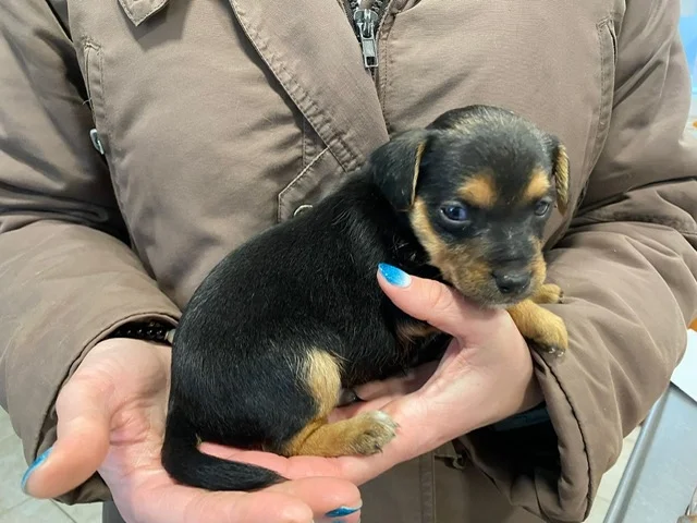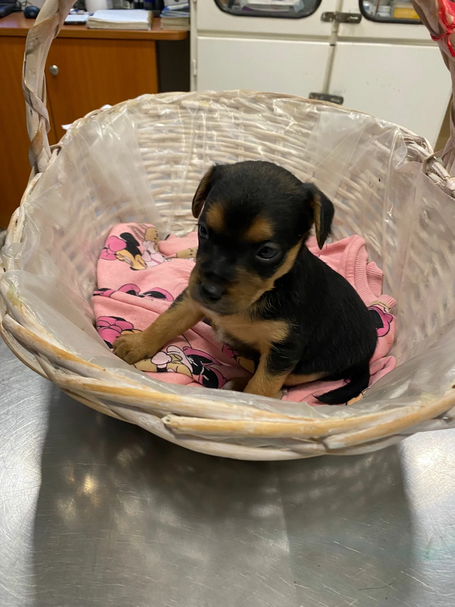 Kmét. Csongrádi utca 62 elé tették ki egy kosárba, masnival átkötve.